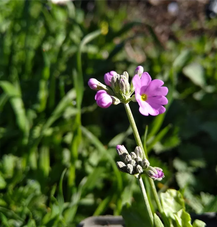 Oh, ist die süß! Kaum ein Kunde, der die kleine Mehl-Primel in unserer Gärtnerei entdeckt, kann sich ihrem Zauber entziehen. Die wunderschönen, strahligen Blütchen in hellem Lila sind aber auch wirklich allerliebst. Sie sitzen zu mehreren einem endständigen, doldigen Blütenstand zusammen, der von einem aufrechten, stabilen Stängel getragen wird. Das länglich-spatelige Laub wächst, wie für die Primeln typisch, in einer Rosette am Grund der Pflanze. Es hat einen leicht gekerbten Blattrand und scheint wie mit Mehl bepudert. Daher auch der Name. Das zarte Geschöpf wächst im Garten gut am Teichrand, wo man es bedenkenlos verwildern lassen kann. Es gedeiht aber auch im Topf oder einer Schale. Vor die Haustüre gestellt, kann man sich im Vorbeigehen immer wieder daran erfreuen. Schöne Pflanzpartner sind Ranunculus auricomus (Gold-Hanhenfuß).