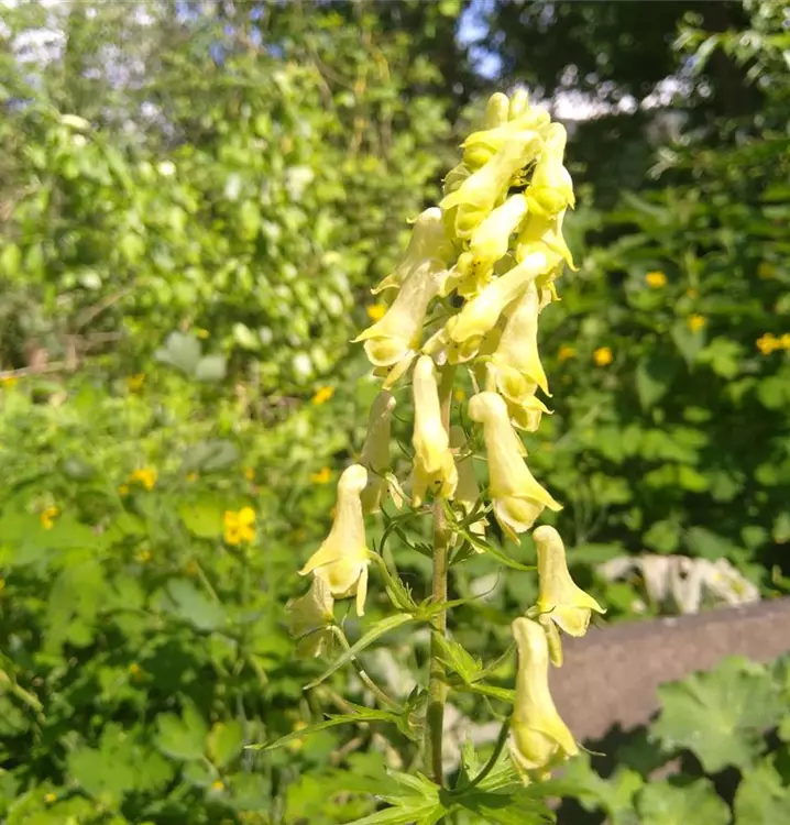 Geschützt und so giftig wie alle Eisenhüte: Der horstig wachsende Hahnenfußblättrige Eisenhut stammt aus den gebirgigen Regionen Zentral- und Südeuropas. Er bildet aufrechte Stängel mit etlichen kleineren Seitentrieben, was ihm ein leicht buschiges Aussehen verleiht. Auf ihnen sitzen, in aufrechten Blütentrauben, die charakteristischen, bei dieser Sorte hellgelben Helmblüten. Sie werden gerne von spezialisierten Wildbienen aufgesucht. Die dunkelgrünen Laubblätter des Hahnenfußblättrigen Eisenhuts sind mehrteilig gelappt und erinnern... an Hahnenfüße. Dieser Eisenhut kommt besonders gut zur Geltung, wenn er in kleinen Gruppen gepflanzt wird. Aber auch in Einzelstellung setzt er sich gekonnt in Szene – z.B. vor lichten Gehölzrändern. Wir kombinieren ihn am liebsten mit Wald-Storchschnabel, hohen Farnen und immergrünen Gräsern. Sehr frosthart.