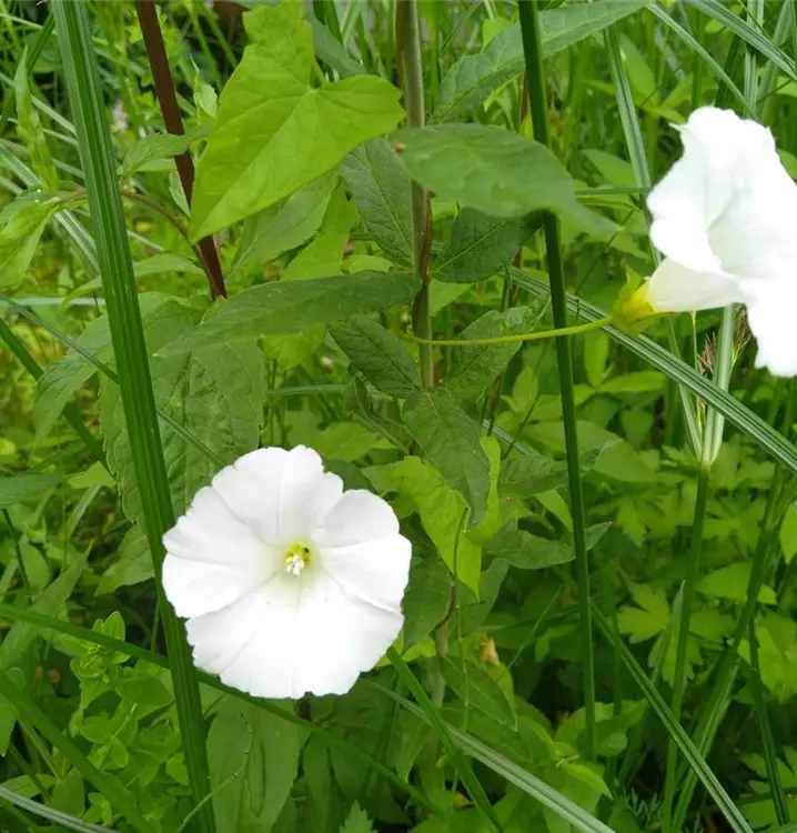 Besonders aktive Wildstaude mit großen Blüten: Die Gewöhnliche Zaunwinde sollte man mit Bedacht im Garten einsetzen. Mit ihrem rankenden Wuchs eignet sie sich wunderbar für die Begrünung von Lauben oder Zäunen, neigt aber im Weinbergsklima stark zum Wuchern. Um ihren Weg zu finden, kreisen die Spitzen der Sprosse entgegen dem Uhrzeigersinn und suchen nach Halt zum Weiterklettern. Für eine Umdrehung brauchen sie nicht einmal zwei Stunden. Findet sie keine geeignete Möglichkeit, sich nach oben zu winden, wächst die Gewöhnliche Zaunwinde auch am Boden entlang. Ihre gestielten, sattgrünen Blätter sind pfeilförmig und sitzen locker verteilt an den dünnen Stängeln. In den Blattachseln erscheinen im Sommer die auffälligen, glocken- bis trichterförmigen Blüten in reinem Weiß. Sie werden gerne von Nachtfaltern und Schwebfliegen besucht. Bei feuchter Witterung hält die Gewöhnliche Zaunwinde ihre dekorativen Blüten geschlossen. In der Volksheilkunde hat die heimische Wildstaude nur untergeordnete Bedeutung und wird ab und an bei Verstopfung empfohlen. Gute Pflanzpartner sind Hopfen (Humulus lupulus).