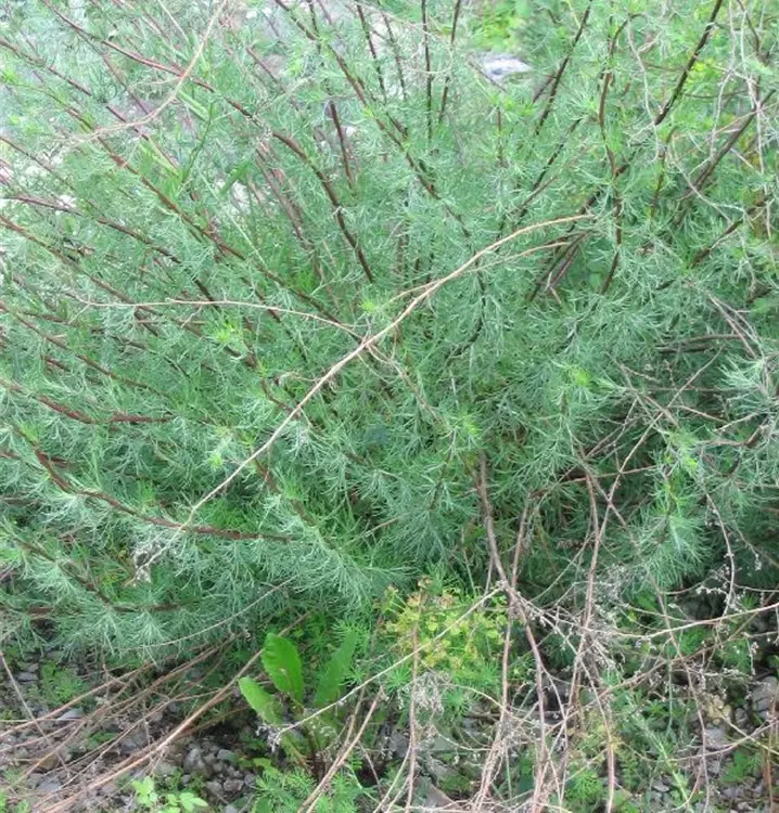 Seine kleinen kugeligen Blütenköpfchen sind rötlich bis rotbraun. Sie sitzen auf aufrechten, locker und sparrig wachsenden Stängeln, die dicht besetzt sind mit kleinen, fiederteiligen Laubblättern. Die braun-roten, wenig verzweigten Stängel verholzen am Grunde und bilden einen schönen Kontrast zum grünen Laub. Anders als bei seinen Verwandten duftet das Laub des Feld-Beifuß kaum. Seine frischen Triebe sind seidig behaart, später werden sie kahl. Schöne Pflanzpartner sind Goldhaar-Aster (Aster linosyris), Wimper-Perlgras (Melica ciliata), Frühlings-Fingerkraut (Potentilla neumanniana), Steinbrech-Felsennelke (Petrorhagia saxifraga) und Scharfer Mauerpfeffer (Sedum acre).