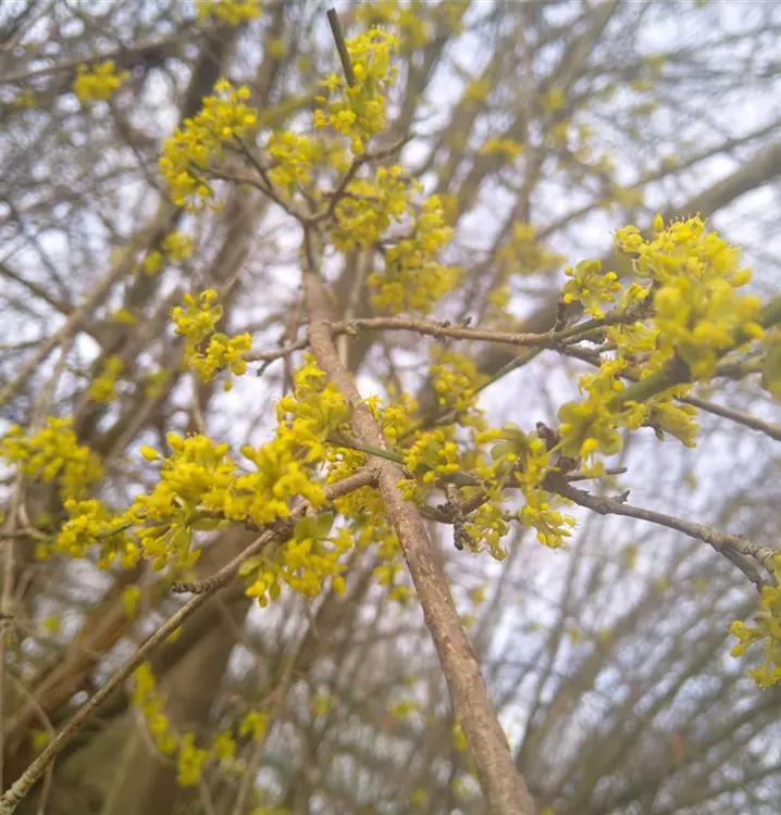 Die Kornelkirsche hat sehr zahlreiche deutsche Bezeichnungen wie Dirlitze, Herlitze oder Korlesbeere.