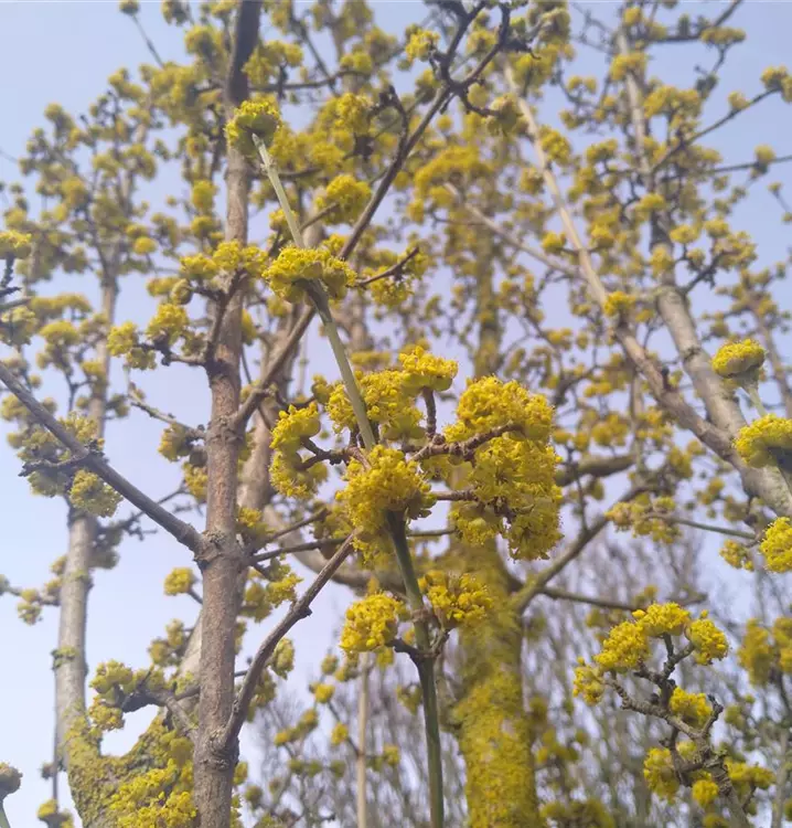 Die Kornelkirsche hat sehr zahlreiche deutsche Bezeichnungen wie Dirlitze, Herlitze oder Korlesbeere.
