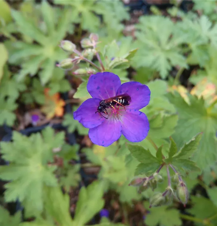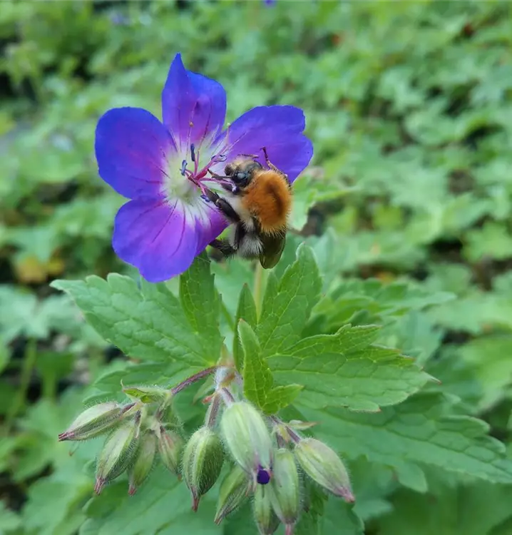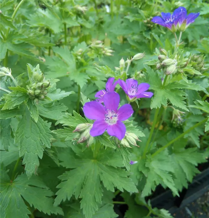 Heimische Wildstaude für nicht zu sonnige Bereiche: Der Wald-Storchschnabel mag es lieber etwas schattiger. Er gedeiht im Schlagschatten und an frischen Gehölzrändern, wo man ihn gut Verwildern lassen kann. Seine Blätter sind mehrfach, fast bis zum Blattgrund, geteilt. Die langgestielten Grundblätter wachsen rosettig. Die oberen Stängelblätter sitzen gehäuft in den Blattachseln. Ansonsten ist der kantige Stängel weitgehend unbelaubt. Er wächst aufrecht, verzweigt sich im oberen Abschnitt mehrmals und trägt die endständigen Blüten. Die großen, rot-violetten Schalenblütchen sitzen jeweils zu mehreren zusammen. Manchmal sind die Blütenblättchen am äußeren Rand leicht gebuchtet. Der Wald-Storchschnabel passt sehr gut in naturnah gestaltete Gärten. Im Wildstaudenbeet kann er gut die Lücken zwischen hohen Stauden schließen.