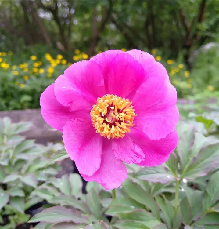 Blütenpracht mit heilender Kraft: Der botanische Gattungsname Paeonia bezieht sich, wie der Zusatz officinalis, auf die Heilkraft der Pfingstrosen. Sie wurden nach Paeon benannt, dem griechischen Gott der Heilkunde. Er soll der Sage nach die Wunden des Gottes Pluto damit geheilt haben, die Herkules ihm zugefügt hatte. Im Mittelalter behandelte man Gicht, indem man Blütenblätter auf die schmerzenden Gelenke auflegte. Einmal gepflanzt, kann diese Pfingstrose viele Jahre am gleichen Standort bleiben. Oft erreicht sie erst nach mehreren Jahren ihre volle Blühkraft, die dann aber über Jahrzehnte anhalten kann. Diese Bauern-Pfingstrose ist etwas kleiner im Wuchs als die meisten ihrer Verwandten. Ihre kompakten Horste aus dekorativem, bläulichem Laub sind gespickt mit zahlreichen, dunkelrosa Blüten und lassen sich im Beet wunderbar mit Seseli libanotis (Heilwurz) und Centaurea scabiosa ssp. alpestris (Alpen-Flockenblume) kombinieren. Das Herz der ausgebreiteten Schalenblüten schmückt sich mit gelben Staubgefäßen. Gute Bienenweide. Klassische Bauerngartenstaude. Gute Schnittblume.
