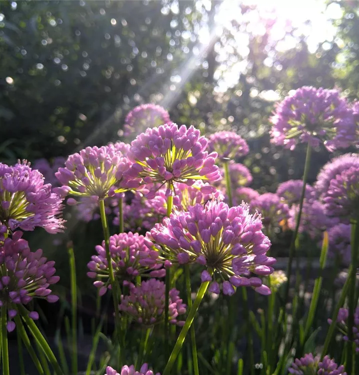 Eine schöne Hybridform aus Allium nutans und Allium senescens. Diese langblühende Staude hält ihr Laub zuverlässig von Frühjahr bis Herbst. Allium `Millenium´ blüht in großer Fülle über den Sommer hinweg in einem zarten violett. Auf trockenem bis frischem, durchlässigem Boden in sonniger Lage im Beet oder Kübel gedeiht diese winterharte Staude am besten, kann aber auch in Steingärten oder sandigen Trockenbereichen verwendet werden. Durch die großen Anzahl an Blüten ist Allium `Millenium´ eine sehr gute Bienenweide.