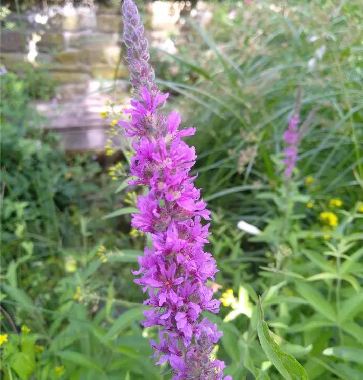 Bei Schmetterlingen sehr beliebt: Der Blut-Weiderich bildet zahlreiche feste Stängel, die von ährigen, leuchtend purpurfarbenen Blütenständen gekrönt werden. Am besten gedeiht er an feuchten Plätzen, wie etwa am Rand des Gartenteiches. Blut-Weiderich entwickelt sich aber auch recht ordentlich im Staudenbeet, wenn der Standort ausreichen feucht ist. In größeren Gruppen gepflanzt und mit Achillea ptarmica (Sumpf-Schafgarbe) und Lysimachia vulgaris (Gewöhnl. Gilbweiderich) kombiniert eine wahre Augenweide. Seine Laubblätter sind lanzettlich, mit herzförmigem Grund. In der Küche kann man die jungen, zarten Triebe und Blätter zum Salat oder an Gemüse geben oder im Smoothie verwenden. In der Heilkunde wird Blut-Weiderich wegen seiner blutzuckersenkenden Wirkung verwendet. Zudem hat er eine antibiotische Wirkung, die gegen Krankheitserreger im Darm eingesetzt werden kann. Ein Tee aus dem Kraut hilft gegen Halsschmerzen und, äußerlich als Umschlag angewendet, bei Hauterkrankungen. Gute Schnittblume.