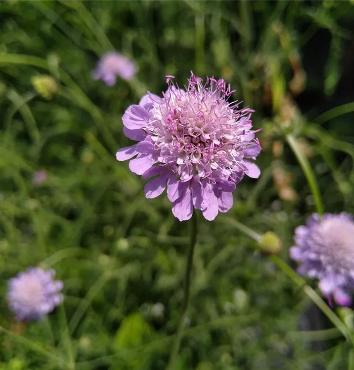 Für violette Glanzpunkte im Beet: Die filigrane Glänzende Skabiose sollte in keinem Naturgarten fehlen. Sie ist wichtige Futterquelle für vielerlei heimische Schmetterlings- und Wildbienenarten. Ihre hübschen, violetten Blütenköpfchen bestehen aus zahlreichen kleinen Einzelblütchen, die dicht gedrängt beieinander sitzen. Die randständigen Blüten sind etwas größer als die Blüten in der halbkugelig aufgewölbten Blütenmitte. Ihren Namen verdankt die Glänzende Skabiose ihrem leicht glänzenden, rosettig wachsenden Laubblättern. Die gefiederten Blätter, mit lanzettlichen Abschnitten bilden einen dekorativen Blattschopf, der sich im Beet gut mit Verbascum austriacum (Österreichische Königskerze) und Veronica teucrium Alba (Großer Ehrenpreis in weiß) kombinieren lässt. Sieht auch bezaubernd aus im Kübel gepflanzt. Gute Schnittblume.