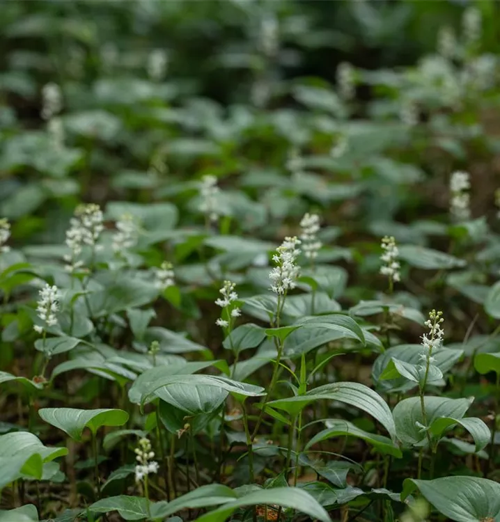 Eher unbekannte Schönheit für schattige Plätzchen: Das Zweiblättrige Schattenblümchen ist mit dem Maiglöckchen verwandt und bevorzugt ähnliche Standorte wie dieses. Es gedeiht gut unter Gehölzen, wo man es verwildern und zu üppigen Beständern heranwachsen lassen kann. Dazu muss man dem kleinen Geschöpf allerdings einige Jahre Zeit lassen. Es passt aber auch gut als Bodendecker ins schattige Staudenbeet, z.B. zwischen Farne und Gräser. Wie der Name schon sagt, hat das Zweiblättrige Schattenblümchen zwei große, am Grunde herzförmige Blätter. Seine zierlichen Blüten sitzen in schmalen, kleinen Trauben zusammen. Sie duften fein nach Honig. Nach der Blüte entstehen daraus kugelige Beeren. Die kleine Staude ist in allen Teilen leicht giftig.