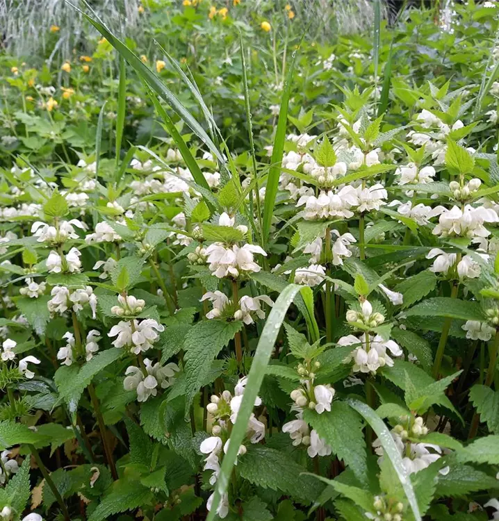 Taubnesselgemüse: 200 g Taubnesselblätter ohne Stiele waschen und mit einem Liebstöckelblatt in kochen-dem Wasser garen. Herausnehmen, abtropfen lassen und fein hacken. Eine Zwiebel würfeln und in Öl dünsten, 5 g Mehl darin anschwitzen, mit wenig Brühe auffüllen, glattrühren und die Soße gut durchkochen lassen. Soviel Soße unter das Blattgemüse ziehen, bis es sämig ist. Das Gemüse aufkochen und würzen.