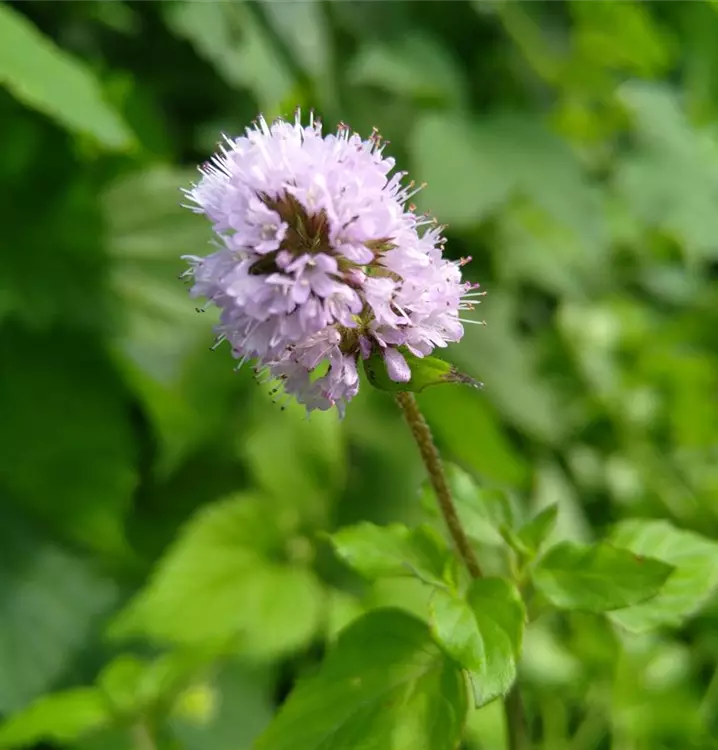 Aromatisch wie die bekannte Pfeffer-Minze: Die kleine Wasser-Minze wächst kriechend, manchmal leicht aufgerichtet. Sie hat hübsche, quirlartige Blütenstände, die etagenartig übereinander sitzen. Ihre dekorativen, rosa Blütenkugeln sind sehr beliebt bei Schmetterlingen und Wildbienen. Das dunkelgrüne Laub färbt sich zum Herbst hin rötlich. Besonders gerne wächst die Wasser-Minze an feuchten Standorten. Im Garten bietet sich der Rand des Teiches an. Hier kann man sie gut kombinieren mit Binsen und Rohrkolben. Ein wassergefüllter Kübel, an nicht zu sonniger Stelle aufgebaut, geht aber auch. Man kann die Wasser-Minze, frisch oder getrocknet, gut als Tee- und Würzkraut verwenden. Tee aus ihren rundlichen Blättern wirkt beruhigend, krampflösend und regt die Gallesekretion an. Und ist zudem magenschonend, da die Wasser-Minze kein Menthol enthält. Eine Kompresse aus frisch ausgedrückten Blättern wirkt kühlend und kann Kopfschmerzen lindern. Frische Blätter kann man zudem zum Würzen von Lamm, Hammel, Geflügel, Leber, Gemüse oder zum Aromatisieren von Fruchtcocktails und Getränken verwenden.