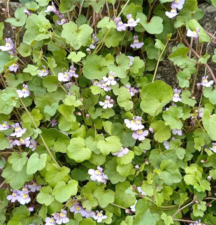 Bewohnt am liebsten Mauern, Felsspalten oder Kiesflächen: Diese erobert das unkomplizierte Mauer-Zimbelkraut mit seinen fadenförmigen, oberirdisch kriechenden Trieben im Nu. Besonders schön wirkt es auch, wenn es wasserfallartig von Trockenmauern herab wachsen kann. Dann kommen das sattgrüne Laub und die zarten, violetten Blüten mit hellgelbem Gaumen besonders gut zur Geltung. Hier wirkt das Mauer-Zimbelkraut gut in Kombination mit ähnlich zierlichen Geschöpfen, wie z.B. Pseudofumaria lutea (Gelber Lerchensporn). Die herzförmigen Laubblätter des Mauer-Zimbelkrauts mit dem leicht gebuchteten Rand sind übrigens eine pfeffrig-scharfe, Vitamin C-reiche Ergänzung in Salaten. Und toll als Beigabe in Gemüsegerichten oder auf Pizza. Fühlt es sich an seinem Standort wohl, kann man es das Jahr hindurch beernten. Zudem verbreitet sich das zarte Gewächs zuverlässig durch Selbstaussaat.