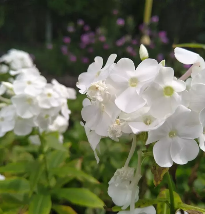 Wüchsige und gesunde Auslese: Dieser Breitblatt-Phlox bildet mit den Jahren imposante Horste, die besonders vor einem dunklen Hintergrund blendend aussehen. Er verträgt gut Wurzeldruck von Gehölzen, passt aber auch ins Staudenbeet. Zur Blütezeit schmückt sich diese Sorte mit einer Wolke aus strahlend weißen Blüten. Sie stehen dicht gedrängt in doldenartigen Blütenständen mit toller Fernwirkung beisammen. Die dunkelgrünen, breiten und vorne zugespitzten Laubblätter bilden einen schönen Kontrast zu den hellen Blüten und sind wenig anfällig für Mehltau. Auch längere Trockenheit macht diesem Phlox nichts aus. Mit seiner neutralen Blütenfarbe kann man ihn vielseitig kombinieren und z.B. zusammen mit Knautia arvensis (Wiesen-Witwenblume) und Pseudolysimachia longifolia Rosea (Langblättriger Blauweiderich in rosa) pflanzen. Gute Schnittblume.