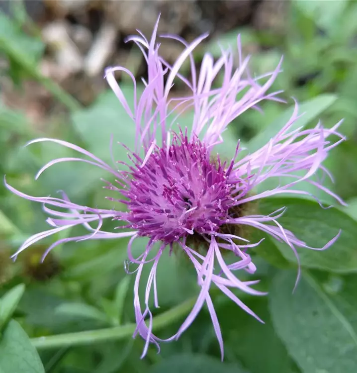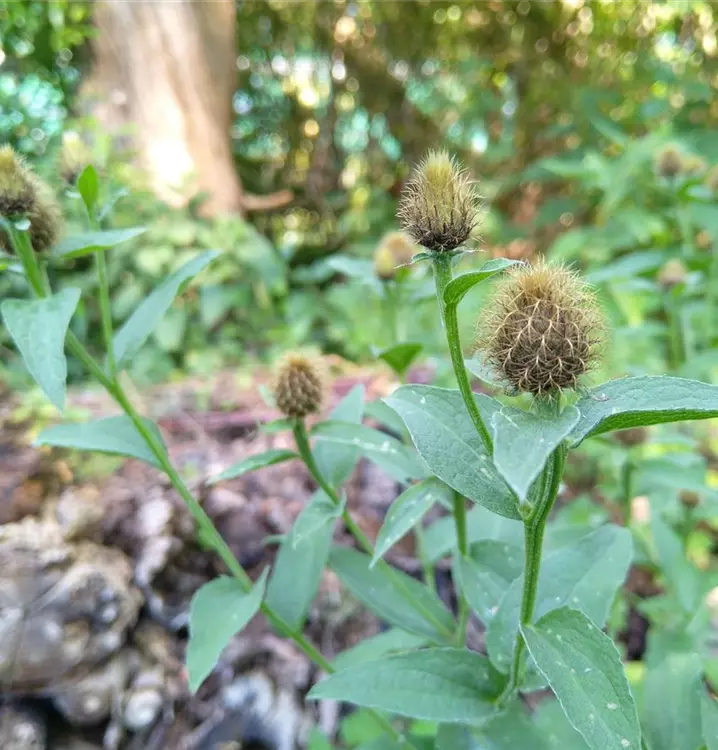 Rarität unter den Flockenblumen: Die selten gewordene, ursprünglich in Mitteleuropa beheimatete Wildstaude wächst gerne in Bergwiesen. Hier fällt die stattliche Staude schon von weitem ins Auge. Gärtnereien bieten die dekorative und zugleich anspruchslose Pflanze selten an. Dabei ist die hübsche Glockenblume ein echter Hingucker im Wildstaudenbeet. Besonders schöne Kombinationen ergeben sich zusammen mit Delphinium elatum (Rittersporn), Anthriscus sylvestris (Gewöhnlicher Wiesen-Kerbel) und Aquilegia alpina (Alpen-Akelei). Die Perücken-Flockenblume hat radförmige Körbchenblüten in dekorativem Rotviolett, die in lockeren Schirmtrauben angeordnet sind. Umschlossen werden die Blüten von äußeren Hüllblättern, die in langen, federigen Grannen auslaufen. Dieser perückenähnlichen Umhüllung verdankt sie auch ihren umgangssprachlichen Namen. Die aufrechten Stängel der Perücken-Flockenblume sind dicht besetzt mit lanzettlichem, stängelumfassendem Laub. Gute Bienenweide.