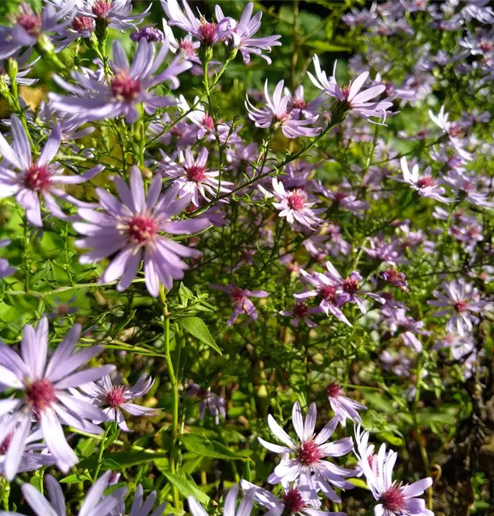 Braucht wenig Pflege, ist äußerst vital: Die Elternart dieser Astern-Sorte stammt aus den französischen Pyrenäen. Deren Gesundheit, Vitalität und natürlichen Charme hat sich diese Gartenauslese bewahrt. Pyrenäen-Astern sind generell robuster als die oft gepflanzten Berg-Astern. Sie bilden stetig neue Triebe und wachsen mit der Zeit zu dichten, breitausladenden Horsten heran. Trotz des stattlichen Wuchses zeichnet sich diese Sorte durch eine hohe Standfestigkeit aus. Ihre Stängel sind dicht belaubt mit stumpf grünen, lanzettlichen und behaarten Laubblättern. Die Körbchenblüten dieser Pyrenäen-Aster sitzen in kurz verzweigten, locker überhängenden Rispen am oberen Stängelende. Ihre Zungenblüten sind violettrosa, die Röhrenblüten in der Mitte – typisch Aster – sind gelb. Die pflegeleichte Pyrenäen-Aster liebt einen sonnigen Standort und harmoniert herrlich mit anderen Sonnenkindern, wie z.B. Achnatherum calamagrostis, Bupleurum ranunculoides, Salvia nemorosa und deren Sorten. Gute Bienen- und Schmetterlingsweide, perfekt für naturnahe Gärten, z.B. vor Sträuchern. Gute Schnittblume.