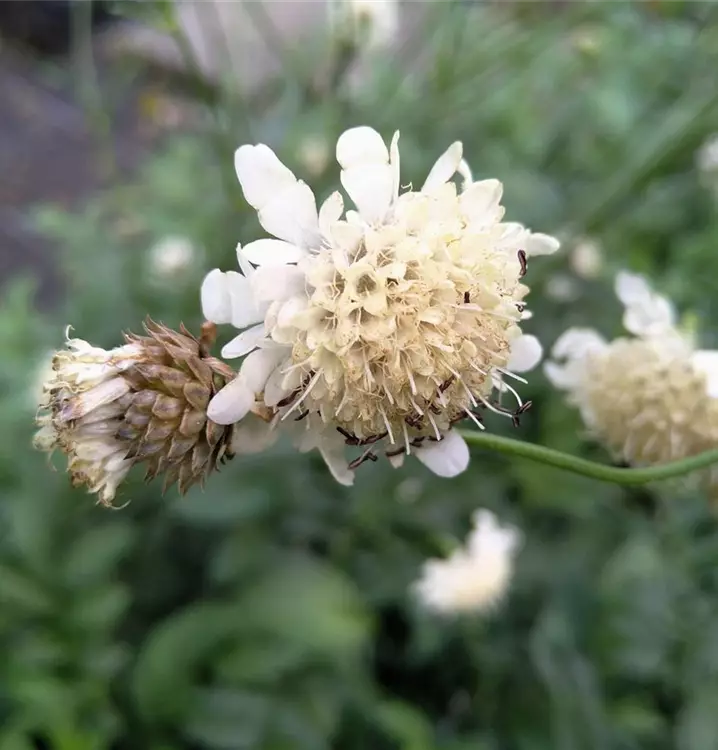 Hohe, vitale Staude für den Steingarten: Der Alpen-Schuppenkopf ist eine der stattlicheren montanen Stauden für den Steingarten, passt aber auch gut in Bauerngärten, Staudenbeete und Rabatten. Hier verwendet man ihn vor allem als Hintergrundpflanze, zusammen mit Campanula glomerata (Knäuel-Glockenblume), Peucedanum ostruthium (Meisterwurz) und Pulmonaria officinalis (Echtes Lungenkraut). Besonders schön wirken eingewachsene Bestände am Fuße von Laubgehölzen. Der untere Teil des Alpen-Schuppenkopfs besteht aus dichten Laubhorsten. Seine Grundblätter sind gestielt und elliptisch. Die Stängelblätter sind grob gefiedert mit länglichen Abschnitten, die einen gesägten Blattrand haben. Grund- wie Stängelblätter sind unterseits dicht behaart, ebenso wie der untere Teil der dünnen, aufrechten Stängel. Diese streben aus den frischgrünen, breitbuschigen Horsten nach oben und sind in der oberen Hälfte nicht beblättert und kaum verzweigt. Manchmal hängen die kantigen Stängel auch leicht bogig über. Am Stängelende sitzen endständige, kugelige Blütenköpfchen in zartem, fast weißem Hellgelb.