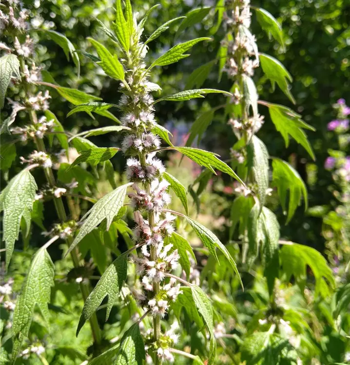 Alte Heilpflanze aus Asien und Sibirien: In Europa wurde Herzgespann schon sehr früh eingebürgert und in Bauern- und Kräutergärten kultiviert. Wie der Name vermuten lässt, wurde die robuste, aufrecht wachsende Staude in der Volksheilkunde bei Herzproblemen eingesetzt und zu diesem Zweck oft mit Valeriana officinalis (Baldrian) und Crataegus monogyna (Weißdorn) kombiniert. Herzgespann hat zudem beruhigende Eigenschaften bei Nervenleiden, starken Kopfschmerzen und Magen-Darm-Beschwerden. Es entwickelt mehrere aufrechte, unverzweigte Stängel. Sie sind vierkantig und dicht mit langgestielten, grob gezähnten Blättern besetzt. Die jungen Blätter können als Gewürz in Erbsen- oder Linsensuppe gegeben werden. Die hellpurpurnen Blüten sitzen zu mehreren, quirlig gehäuft in den Blattachseln. Das Stängelende krönen ährige Blütenstände. Für die heilkundliche Verwendung erntet man die oberen Teile während der Blüte und lässt sie an einem schattigen Ort trocknen. Für einen beruhigenden Tee übergießt man 1 TL Kraut mit 150 ml kochendem Wasser. Fünf Minuten ziehen lassen und dann schluckweise trinken (maximal zwei Tassen pro Tag). Vorsicht! Der Tee sollte nicht von Schwangeren getrunken werden.