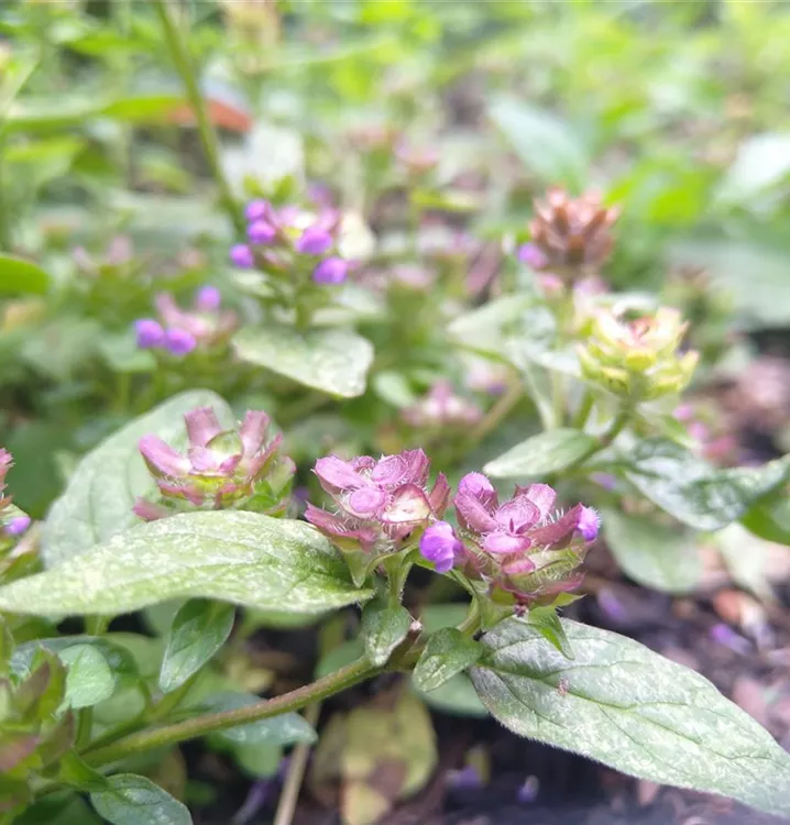 Sehr leckeres, fast vergessenes Küchenkraut: Und ein schöner, immergrüner Bodendecker im Beet. Das sattgrüne, eiförmige Laub der Gewöhnliche Braunelle wächst am Grund der Pflanze rosettig. Darüber erhebt sich ein aufsteigender, kaum verzweigter und wenig beblätterter Stängel. Diesen krönen kugelig-eiförmige Blütenähren. In den oberen Blattachseln erscheinen weitere, langestielte Blütenstände. Die kleinen Einzelblüten sitzen dicht gedrängt beisammen und sind dunkelviolett. Sie werden gerne von Schmetterlingen und Wildbienen besucht. Blätter und Stängel der Gewöhnlichen Braunelle sind etwas behaart. Die jungen, vitaminreichen Rosettenblätter passen gut zu gemischten Salaten, in Gemüse, Pfannkuchen oder Suppen. Man kann sie auch trocknen und zum Würzen verwenden. Die Kosmetikindustrie verwendet Inhaltsstoffe der Gewöhnliche Braunelle übrigens in Produkten mit UV-Schutzfunktion.