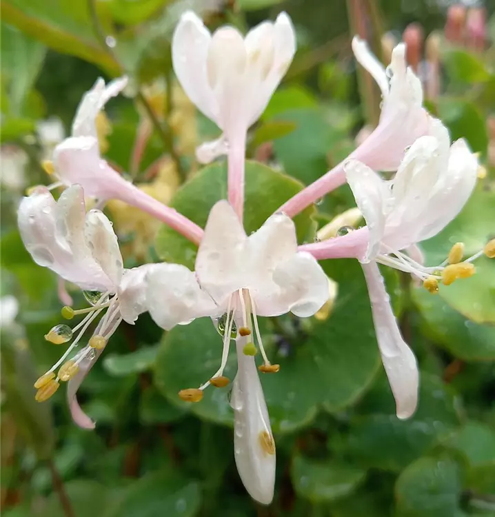 Beliebt bei nachtschwärmenden Insekten: Wenn es Abend wird, entfalten die weiß-gelben Blüten des Wald-Geißblatts ihre volle Pracht. Und sie duften verlockend - sowohl für Menschen wie auch für die zahlreichen langrüsseligen Insekten, Falter und Schmetterlinge, die sie gerne besuchen. Das Wald-Geißblatt kommt in der Natur in Wäldern und Heckengemeinschaften vor, wo es mit seinen lianenartigen Schlingen ganze Bäume regelrecht einspinnt. Wuchshöhe 3-4 m. Im Garten gibt man ihm am besten einen Platz, an dem der Fuß der Pflanze stets beschattet und feucht ist. Nach der Blüte entstehen kugelige, rote Beeren, die gerne von Vögeln genascht werden. Für Menschen sind sie giftig. Die sommergrüne Kletterpflanze kann gut kombiniert werden z.B. mit der Alpen-Waldrebe (Clematis alpina).