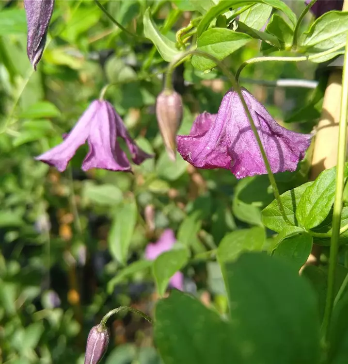 Ein Muss für Clematis-Fans: Die violett blühende Italienische Waldrebe mit ihren 3-4 cm großen Blüten gehört zu den robustesten und unkompliziertesten Waldreben überhaupt. Sie blüht besonders lange vom Sommer bis in den Herbst und fühlt sich an fast allen Standorten wohl, sogar in absonniger Lage. Mit einer Wuchshöhe von 2-3 m und Wuchsbreite von 70-120 cm eignet sie sich sowohl für die Kübelbepflanzung als auch zur Begrünung von Mauern, Zäunen, Bäumen und Sitzgelegenheiten im Garten. Geben Sie ihr dabei immer eine Rankhilfe. Um sich jedes Jahr an ihrer üppigen Blütenfülle zu erfreuen, scheiden Sie Italienische Waldrebe im November/Dezember bis auf 30-40 cm über dem Boden zurück. Sie können auch erst im Februar/März schneiden und haben so mit den fedrigen Samenständen einen dekorativen Hingucker während der kalten Jahreszeit im Garten auch die Vögel freuen sich über die Samenstände als Nahrung.