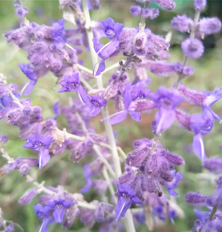 Diese Pflanze, auch "Russischer Salbei" genannt, ist eigentlich kein Salbei - hat aber genau dessen Aroma! Wird in Russland als Kräutertabak und mildes Anregungsmittel genutzt. Wirkt von weitem wie Riesenlavendel mit seinen silberweißen Blättern und Stängeln. Die himmelblauen, filigranen Blütenkerzen blühen den ganzen Sommer über.