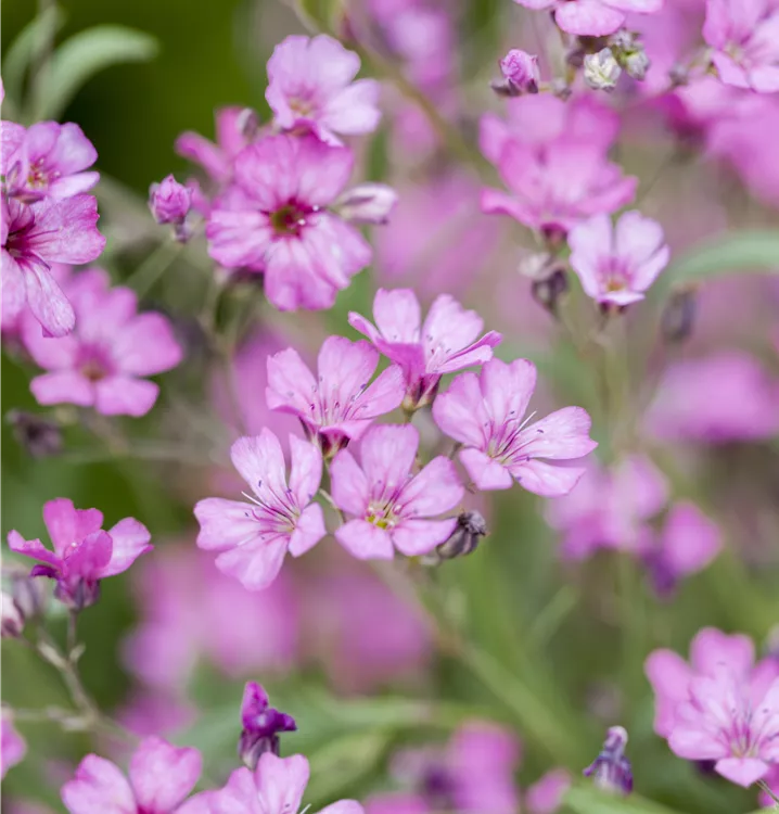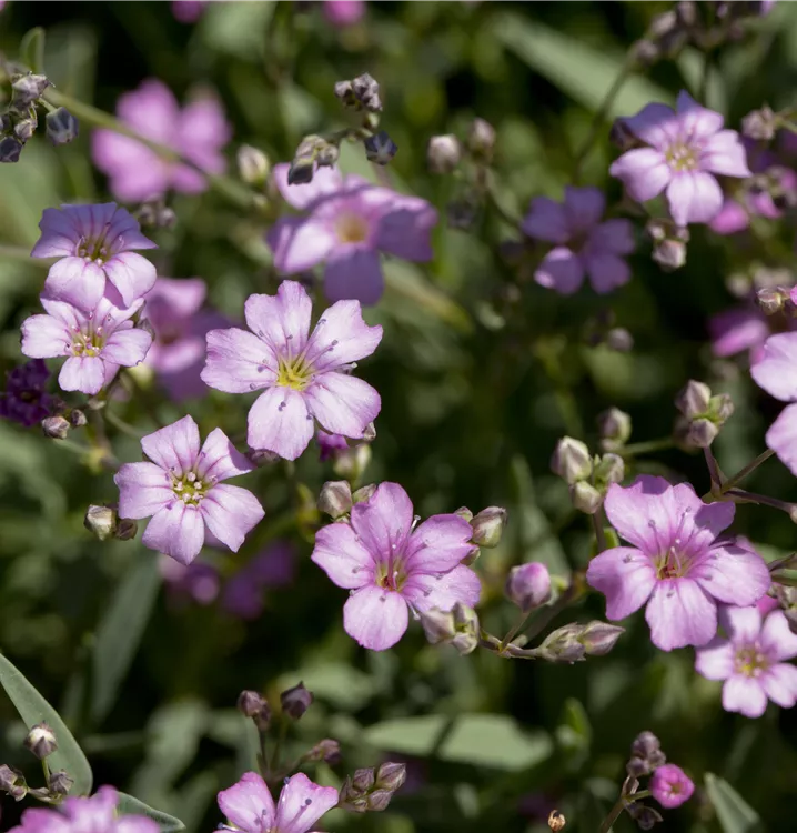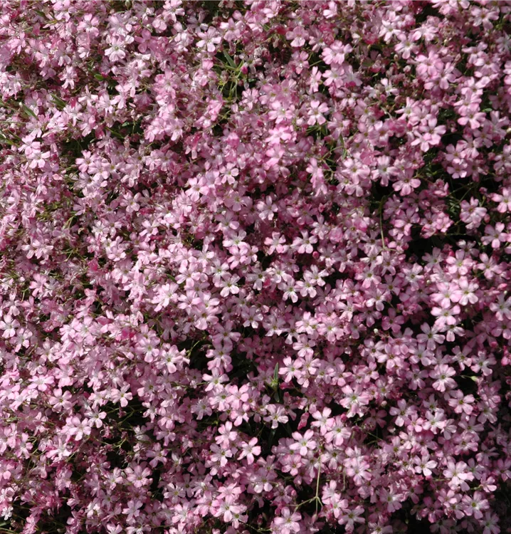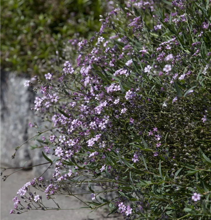 Wärmeliebender Bodendecker: Die rosa blühende Auslese schmückt sich mit winzigen, dafür zahlreichen, zipfligen Glockenblütchen. Das lässt sich im sonnigen Staudenbeet gut als auflockerndes Element integrieren, z.B. zwischen Potentilla argentea (Silber-Fingerkraut) und Veronica teucrium (Großer Ehrenpreis). Kriechendes Gipskraut wächst mit der Zeit zu dekorativen, graugrünen Teppichen heran. Seine verzweigten, kriechenden Ausläufer sind locker belaubt, am Grunde verholzen sie etwas. Das feine Laub ist linealisch spitz, manchmal sichelförmig. Eine reizvolle Verbindung ist Kriechendes Gipskraut in Verbindung mit Steinen, z.B. bei Trockenmauern oder steinigen Flächen. Einmal eingewachsen, ist diese Staude sehr langlebig.