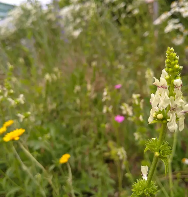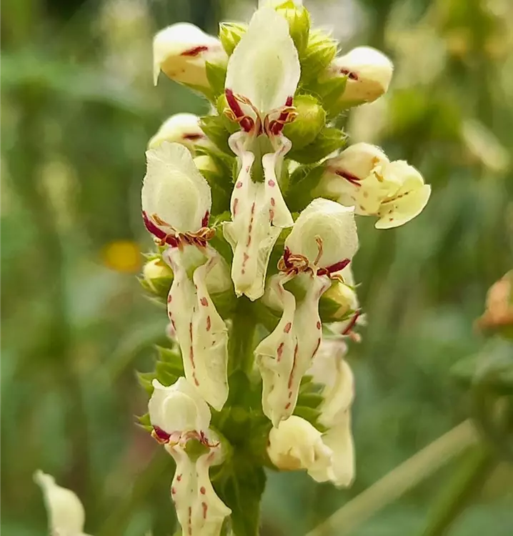 Ausgefallener, hellgelber Ziest: Die Römer glaubten, Aufrechter Ziest schütze gegen das Böse und trugen ihn im Amuletten bei sich. Auf diesem Wege gelangte der wunderschöne Lippenblütler auch zu uns. Im Garten gedeiht die anspruchslose Pflanze gut auf Schotterflächen. Sie liebt volle Sonne und lässt sich gut mit Teucrium chamaedrys (Edel-Gamander), Thymus serpyllum (Sand-Thymian) und Allium sphaerocephalon (Kugel-Lauch) kombinieren. Der Aufrechte Ziest hat spateliges bis länglich-lanzettliches Laub, das locker über den aufrecht wachsenden Stängel verteilt ist. Das Stängelende krönt sich mit ährenartigen, aufrechten Blütenständen. Sie bestehen aus zahlreichen, quirlartig angeordneten Lippenblüten und werden gerne von Hummeln besucht. Auch andere Wildbienen-Arten, Schmetterlinge und Schwebfliegen mögen sie sehr. In der Heilkunde oder als Küchenkraut hat der Aufrechte Ziest, anders als viele seiner Verwandten, kaum Bedeutung erlangt.