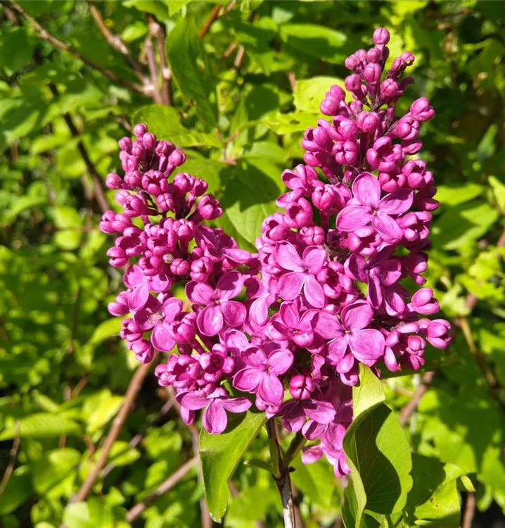 Dieser dunkelpurpurrot blühende Edel-Flieder unterscheidet sich von dem Gemeinen Flieder durch die größeren Blütendolden. Der Strauch wächst aufrecht, dicht verzweigt und wird bis ca. 3,5 m hoch. Das grüne, ovale Laub treibt früh aus. Die schmalen Blütendolden mit unzähligen einfachen Blüten werden bis zu 25 cm lang. Im Mai verströmen die Blüten einen starken, wohlriechenden Duft und locken Bienen- und Schmetterlinge zum Frühjahrsschmaus an. Das kräftige, fein verzweigte Wurzelsystem bildet oberflächennahe Wurzelbärte. Wurzelschosse unbedingt bis zum Wurzelansatz nach dem Freigraben entfernen, da diese sonst die Edeltriebe überwuchern. Der Flieder ist hitzeverträglich, stellt sich dem Wind und ist frosthart. Wunderschöner Strauch zur Gruppen- und Einzelbepflanzung. Achtung: Unsere Mitmenschen verfallen gerne dem Duft und Aussehen - dadurch ist mit Zweigräuberei zu rechnen.