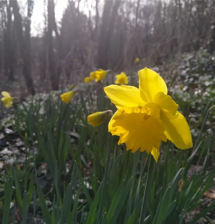 Blüht im Gegensatz zu Narcissus pseudonarcissus lobularis bereits im ersten Standjahr.