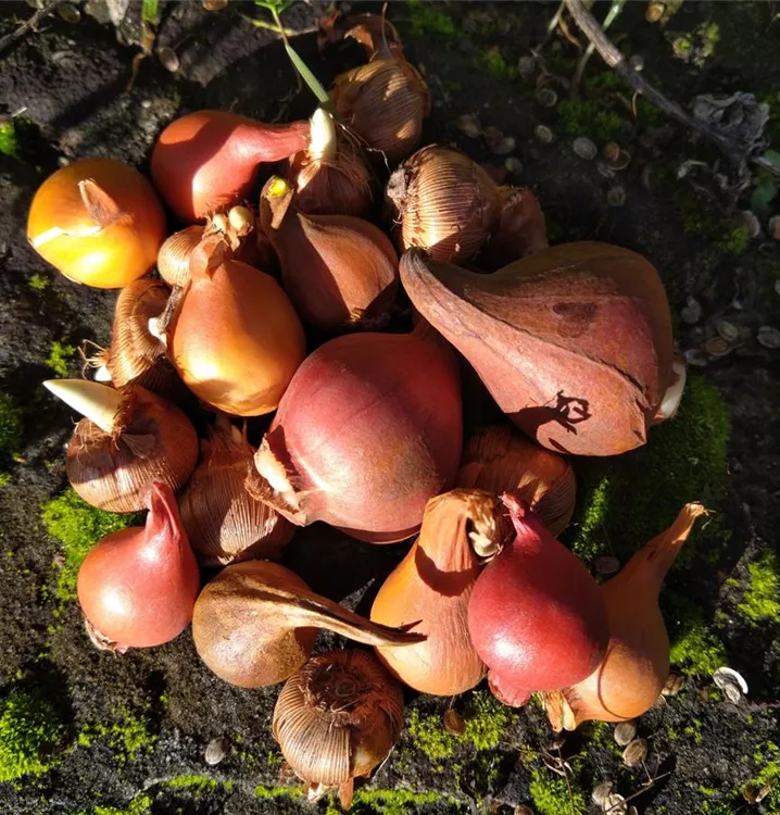 Blumenzwiebeln werden von Mitte September bis Ende November doppelt so tief wie es dem Durchmesser der Zwiebel entspricht, gesteckt. Am natürlichsten sehen sie aus, wenn sie grüppchenweise zusammenstehen.