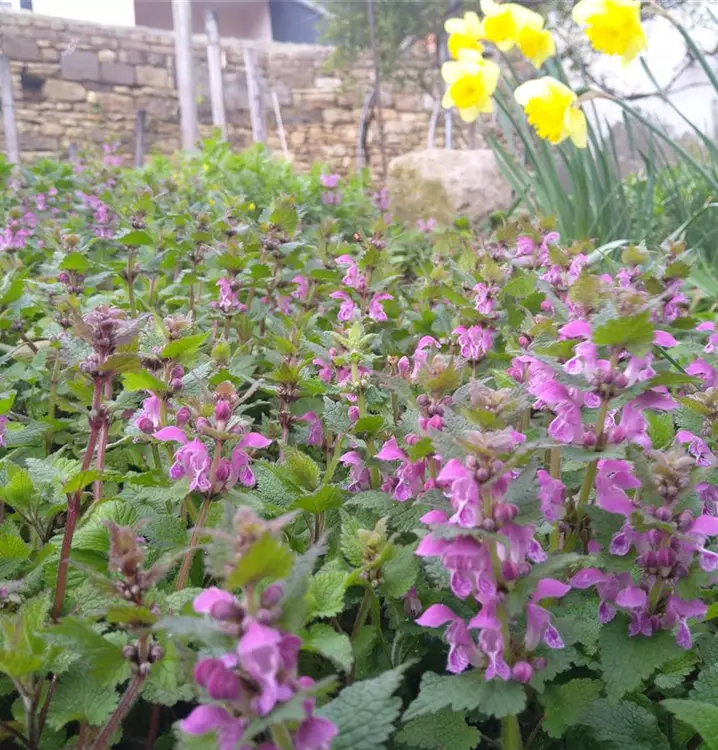 Taubnesselsalat mit Ei: 30 g Taubnesselblüten waschen und in feine Streifen schneiden. 2 weichgekochte Eier in Scheiben und 50 g feinblättrig geschnittene Champignons. Eine Zwiebel würfeln, alles miteinander vermischen, mit Essig, Öl, Kräutern und Gewürzen abschmecken und mit den Blüten von Gänseblümchen und Taubnesseln garnieren.