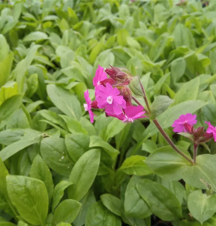 Bezauberndes Geschöpf für blühende Wiesen: Am liebsten wächst die Rote Lichtnelke auf Wiesen, besonders wenn diese etwas feucht sind, in lichten Laubwäldern oder am Waldrand. Entsprechend sollte man ihren Standort im Garten wählen. Die Rote Lichtnelke hat strahlige, rote Blüten, die am Grund röhrenförmig verwachsen sind. Sie stehen gehäuft am oberen Stängelende beisammen. Etwas später blühen weitere langgestielte Blütenstände in den oberen Blattachseln auf. Die Blüten sind nur tagsüber geöffnet. Der Stängel wächst aufrecht und etwas verzweigt. Im unteren Bereich ist er locker besetzt mit breit lanzettlichen Laubblättern in mattem Grün. Die Wurzel der Roten Lichtnelke wurde in vergangener Zeit oftmals als Seife verwendet. Gute Pflanzpartner sind Hesperis matronalis Alba (Gewöhnliche Nachtviole in weiß) und Campanula trachelium (Nesselblättrige Glockenblume).