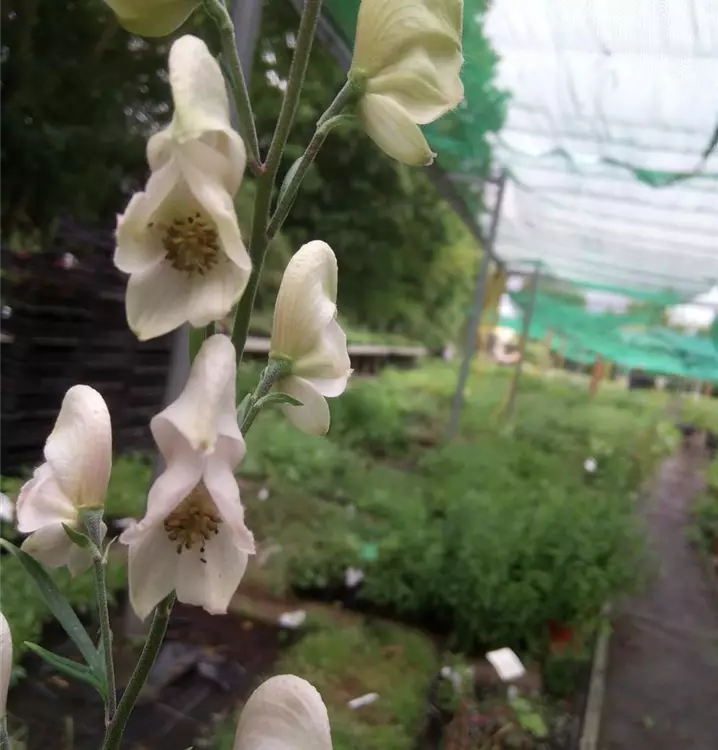 Weiß blühende Variante des bekannten Blauen Eisenhuts: Die Sorte Album unterscheidet sich im Wuchs nicht von der Wildform. Wie bei dieser bilden mehrfach gelappte, dunkelgrüne Laubblätter üppige Horste. Feste, dicht belaubte Stängel tragen die aufrechten, endständigen Blütentrauben. Die robuste Staude mit den charakteristischen Helmblüten bereichert – gerade in dieser hellen Variante – jede Pflanzung in schattiger Lage. Als weißer Farbtupfer, zusammen mit Rittersporn, Nesselkönig, Gedenkemein und Schattengräsern, ermöglicht er lebendig wirkende Pflanzungen auch in dunkleren Gartenbereichen.
