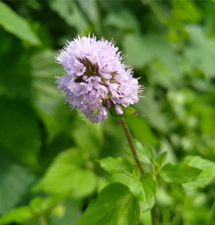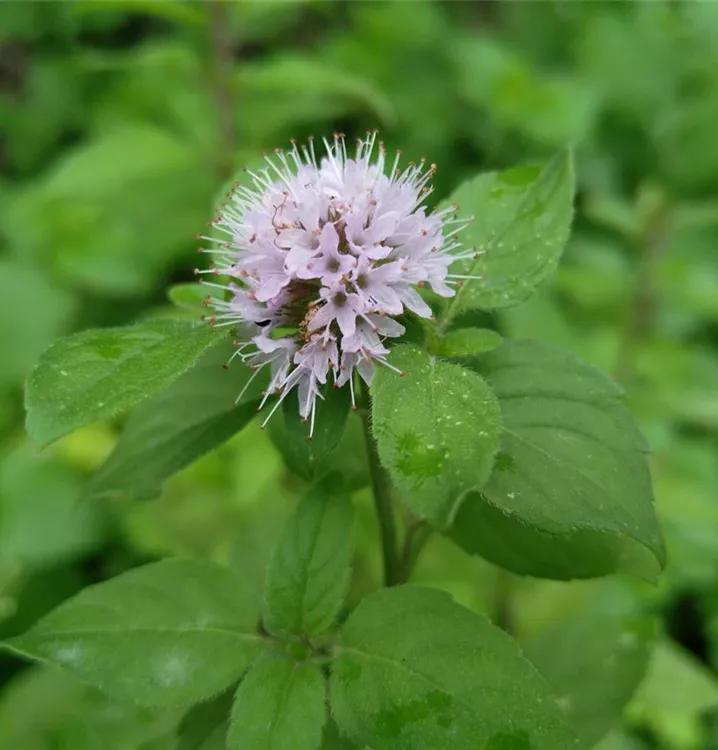 Aromatisch wie die bekannte Pfeffer-Minze: Die kleine Wasser-Minze wächst kriechend, manchmal leicht aufgerichtet. Sie hat hübsche, quirlartige Blütenstände, die etagenartig übereinander sitzen. Ihre dekorativen, rosa Blütenkugeln sind sehr beliebt bei Schmetterlingen und Wildbienen. Das dunkelgrüne Laub färbt sich zum Herbst hin rötlich. Besonders gerne wächst die Wasser-Minze an feuchten Standorten. Im Garten bietet sich der Rand des Teiches an. Hier kann man sie gut kombinieren mit Binsen und Rohrkolben. Ein wassergefüllter Kübel, an nicht zu sonniger Stelle aufgebaut, geht aber auch. Man kann die Wasser-Minze, frisch oder getrocknet, gut als Tee- und Würzkraut verwenden. Tee aus ihren rundlichen Blättern wirkt beruhigend, krampflösend und regt die Gallesekretion an. Und ist zudem magenschonend, da die Wasser-Minze kein Menthol enthält. Eine Kompresse aus frisch ausgedrückten Blättern wirkt kühlend und kann Kopfschmerzen lindern. Frische Blätter kann man zudem zum Würzen von Lamm, Hammel, Geflügel, Leber, Gemüse oder zum Aromatisieren von Fruchtcocktails und Getränken verwenden.