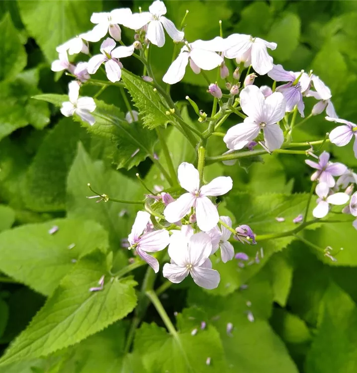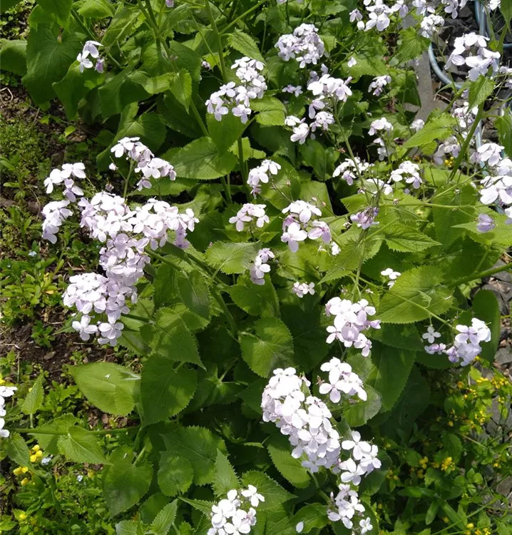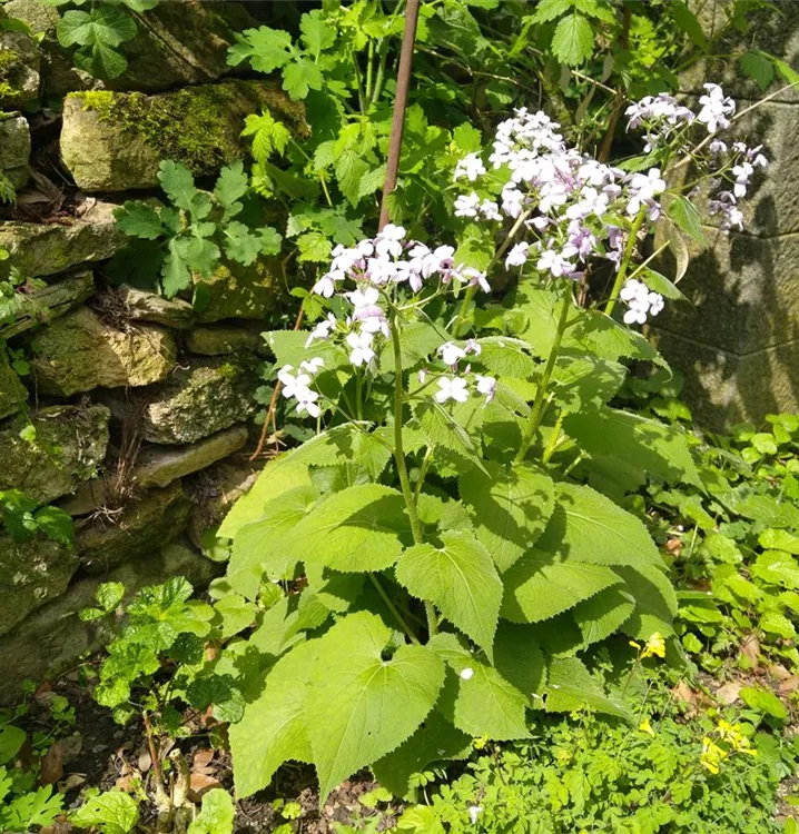 Robuste Blattschmuckstaude für schattige Plätze: Das Ausdauernde Silberblatt bewohnt in der Natur gerne schattige, feuchte Plätze in Schluchten und Wäldern. Daher sollte man ihm im Garten einen ähnlichen Standort mit nährstoffreichem Boden geben. Fühlt es sich wohl, samt es sich zuverlässig aus und bildet bald üppige, ausdauernde Bestände. Das Ausdauernde Silberblatt hat langgestielte, herzförmige Blätter mit fein gezähntem Blattrand, die sich in Beeten mit Waldcharakter gut mit Molinia arundinacea (Rohr-Pfeifengras) und Astrantia major (Große Sterndolde) kombinieren lassen. Seine duftenden lila Blütchen stehen in lockeren Doldentrauben zusammen, die sich auf langen, dünnen Stielen über das Laub erheben. Sie werden gerne von Nachtfaltern besucht. Für einen schönen Winteraspekt kann man die Blütenstände nach dem Verblühen stehen lassen und erst im Frühjahr des folgenden Jahres zurückschneiden.
