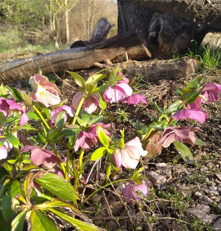 Kommt in der Natur auf Bergwiesen vor: Man kann ihr daher einen sonnigen Platz im Garten geben, wenn der Boden ausreichend feucht ist. Wie ihre Geschwister ist die Orientalische Nieswurz wintergrün. Sie hat auch das derbe Laub geerbt, das dunkelgrün und üppig wächst. Die Blätter mit breiten, umgekehrt lanzettlichen Blattspreiten sind spitz gezähnt und wachsen zu ansehnlichen Büschen heran. In naturnahen Pflanzungen wirkt die Orientalische Nieswurz mit ihren verzweigten Blütenschäften wunderbar. Die hängenden, schalenförmigen Blüten sind besonders groß und der Hingucker im noch kargen Beet. Sie sind weiß und schimmern manchmal rosa bis rötlich. Am besten gedeiht die Orientalische Nieswurz, wenn man sie am einmal gewählten Standort ungestört wachsen lässt.