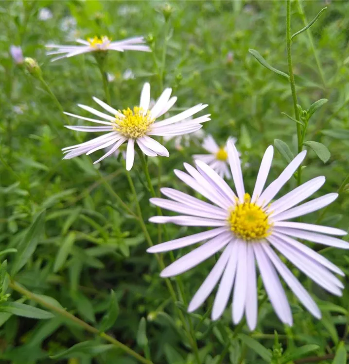 Braucht wenig Pflege, ist äußerst vital: Die Elternart dieser Astern-Sorte stammt aus den französischen Pyrenäen. Deren Gesundheit, Vitalität und natürlichen Charme hat sich diese Gartenauslese bewahrt. Pyrenäen-Astern sind generell robuster als die oft gepflanzten Berg-Astern. Sie bilden stetig neue Triebe und wachsen mit der Zeit zu dichten, breitausladenden Horsten heran. Trotz des stattlichen Wuchses zeichnet sich diese Sorte durch eine hohe Standfestigkeit aus. Ihre Stängel sind dicht belaubt mit stumpf grünen, lanzettlichen und behaarten Laubblättern. Die Körbchenblüten dieser Pyrenäen-Aster sitzen in kurz verzweigten, locker überhängenden Rispen am oberen Stängelende. Ihre Zungenblüten sind violettrosa, die Röhrenblüten in der Mitte – typisch Aster – sind gelb. Die pflegeleichte Pyrenäen-Aster liebt einen sonnigen Standort und harmoniert herrlich mit anderen Sonnenkindern, wie z.B. Achnatherum calamagrostis, Bupleurum ranunculoides, Salvia nemorosa und deren Sorten. Gute Bienen- und Schmetterlingsweide, perfekt für naturnahe Gärten, z.B. vor Sträuchern. Gute Schnittblume.
