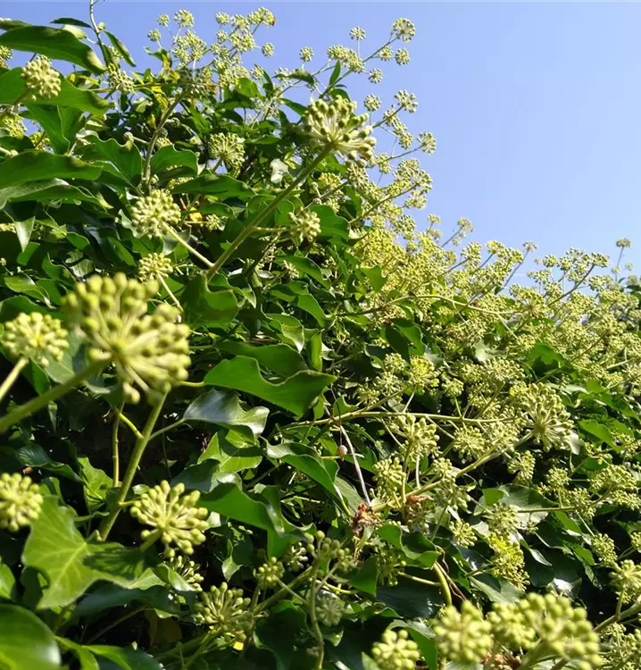 Immergrüner, zwischen 50 und 100 cm hoch werdender Strauch, nicht kletternd, aufrecht wachsend und stark verzweigt. Das Wurzelsystem ist dicht verzweigt und nahe an der Bodenoberfläche. Ungelappte, dunkelgrüne Blätter, 7 bis 9 cm lang und glänzend. Nach ca. fünf bis sechs Jahren (bei Veredlungen bereits im ersten Jahr) erscheinen von September bis November grüngelbliche Blüten, die etwas unangenehm riechen. Die Blüte im Oktober ist eine ideale Nektarquelle für Insekten. Im darauffolgenden Frühjahr sieht man die blauschwarzen, runden, äußerst dekorativen Beeren. Geeignet zur Unterpflanzung von Gehölzen oder zur Begrünung von Mauern. Hedera helix arborescens wächst auf schwach sauren bis stark alkalischen Böden.
