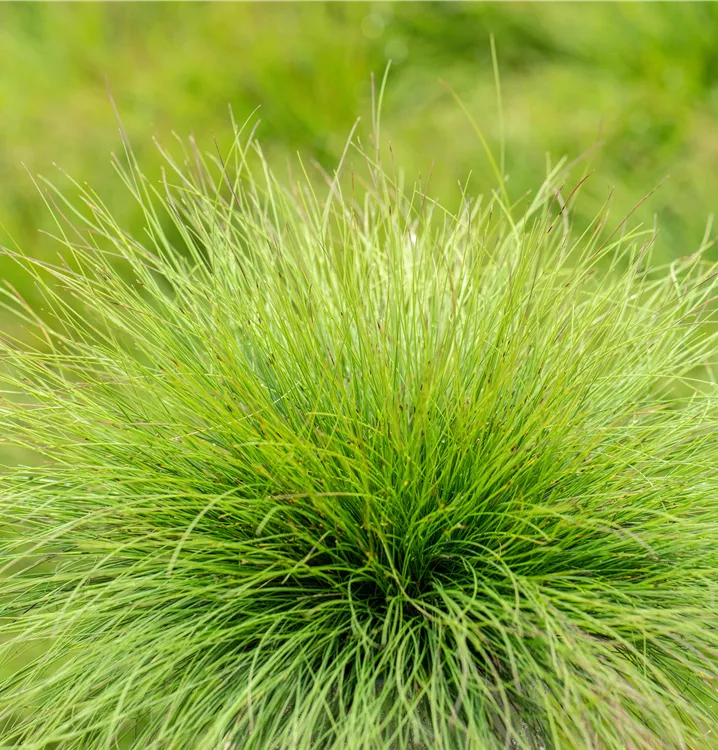 Geeignet für die extensive Dachbegrünung: Der Amethyst-Schwingel setzt besondere Farbakzente. Seine langen, bogig überhängenden Laubblätter sind zunächst blaugrün gefärbt und nehmen später eine ins rötliche gehende Färbung an. Die dekorativen, kugeligen Horste bleiben das ganze Jahr über erhalten und sorgen für schöne Aspekte auch in winterlichen Beeten. Zur Blütezeit schmückt sich der wärmeliebende Amethyst-Schwingel mit rispigen, bis zu 22 cm langen Blütenständen aus zahlreichen kleinen Ährchen. Die Rispen werden von straff aufrecht wachsenden Stängeln getragen und erheben sich deutlich über die bunten Laubschöpfe. In sonnigen Beeten kann man den Amethyst-Schwingel zusammen mit Gewöhnliches Katzenpfötchen (Antennaria dioica), Alpen-Aster (Aster alpinus) und Gewöhnliche Weiße Kuhschelle (Pulsatilla vulgaris Alba) zu sehr natürlich anmutenden Pflanzgemeinschaften kombinieren. Gedeiht auch zuverlässig im Kübel.
