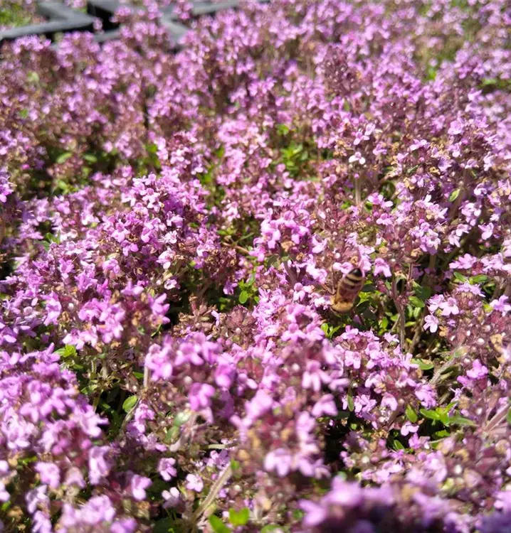 Für einen bekömmlichen Husten-Tee: Sand-Thymian wirkt schleimlösend und bringt daher, als heißer Tee getrunken, schnelle Linderung. Bei Bedarf kann man mit Honig süßen. Auch als Würzkraut in der Küche ist das kleine Pflänzchen einsetzbar und (frisch oder getrocknet) lecker in Salaten, Eintöpfen, Kartoffelgerichten, Weichkäse und Braten. Pizza, Tomatensoße oder Kräuterbutter verleiht Sand-Thymian einen besonderen Pfiff. Man erntet das Kraut während der Blüte und verwendet sowohl die kleinen, linealischen Blättchen als auch die rosa Lippenblütchen. Der Sand-Thymian entfaltet sein Aroma am intensivsten, wenn er sonnig und trocken steht. Im Garten sind daher Ränder von Kieswegen, Mauerfugen und Schotterflächen hinter Trockenmauern ideale Standorte. Mit der Zeit wächst er zu überreich blühenden Polstern heran, die im Sommer beliebte Tummelplätze für Schmetterlinge und Wildbienen sind. Passt gut zu Veronica prostratra (Liegender Ehrenpreis) und Potentilla argentea (Silber-Fingerkraut). Immergrün.