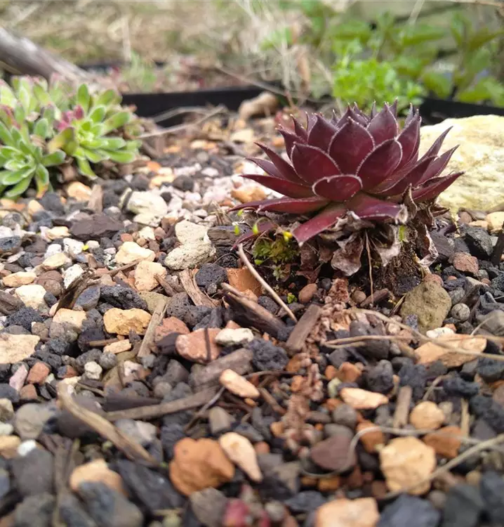 Genoss im Altertum und Mittelalter großes Ansehen: Und auch heute noch werden der Dach-Hauswurz zahlreiche Heilwirkungen zugesprochen. Bei Wunden, leichten Verbrennungen und Insektenstichen hilft ein Presssaft aus den fleischigen Blättern. Das wirkt zusammenziehend und kühlend. Man kann aber auch einige Blätter zerquetschen und direkt auf die betroffene Stelle auflegen. Die Dach-Hauswurz kann leicht im Garten angesiedelt werden. Sie bildet große, ausgebreitete Blattrosetten aus eiförmigem, vorne zugespitztem Laub. Die Blattspitzen sind oft rötlich überlaufen. Die wüchsige kleine Staude macht zahlreiche Ausläufer, mit denen sie nach und nach ihre Umgebung erobert. Auf aufrechten, unverzweigten Stängeln erscheinen zur Blütezeit hellrote, strahlige Blüten. Sie sind flach ausgebreitet und üben eine große Anziehungskraft auf Schmetterlinge und Wildbienen aus. Im Steingarten kann man die bläulich-grünen Blattpolster der Dach-Hauswurz gut kombinieren mit Sedum album Coral Carpet (Weißer Mauerpfeffer). Auch für die Begrünung von Dächern bestens geeignet.