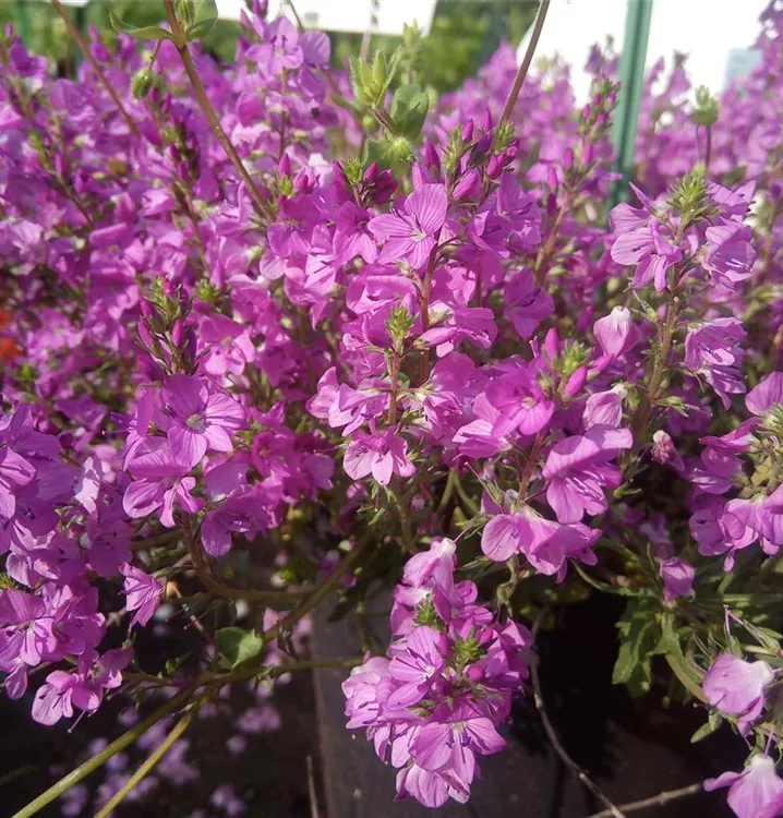 Macht dekorative, immergrüne Polster: Die sich zur Blütezeit schmücken mit zahlreichen, satt rosafarbenen Blütenständen. Die kleinen Blütenkerzen stehen auf aufrechten Stängeln und lassen das frischgrüne, lanzettliche Laub fast völlig unter ihrem üppigen Blütenflor verschwinden. Dieser Liegende Ehrenpreis sieht besonders schön aus in größeren Gruppen gepflanzt und passt im Steingarten gut zu Alyssum montanum (Berg-Steinkraut) und Campanula cochleariifolia (Zwerg-Glockenblume). Auch auf Trockenmauern sind die bunten Farbtupfer dieser Sorte sehr wirkungsvoll. Hier findet der Liegende Ehrenpreis auch in der kleinsten Fuge Halt und ist im Sommer beliebter Treffpunkt zahlreicher Schmetterlings- und Wildbienen-Arten.