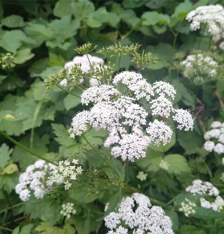 Wichtige Nektarpflanze für höchstspezialisierte Wildbienenarten: Der Gewöhnliche Giersch ist eine ausgesprochen wüchsige Pflanzen. Er bildet nach allen Seiten verzweigte Rhizome, aus denen immer neue Pflänzchen sprießen. Es empfiehlt sich, dem Giersch ebenso wüchsige Nachbarn zu Seite zu pflanzen. Bewährt haben sich bspw. Taglilien (Hemerocallis in Sorten), Hänge-Segge (Carex pendula), hohe Minzen (Mentha) und Wald-‚Ziest (Stachys sylvatica). Seine geteilten Laubblätter bestehen aus eiförmigen bis länglichen, am Rand gesägten Abschnitten. Die kleinen, weißen Sternblüten bilden lockere Blütendolden, die von kantigen, gefurchten Stängeln getragen werden. Ihre Haltbarkeit als Schnittblume wird neuerdings immer mehr von Floristen entdeckt.